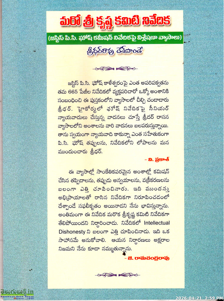 Maro Sri Krishna Committee Nivedika(Justic P.C.Ghos Commision Nivedika Pai Visleshana Vyasalu)